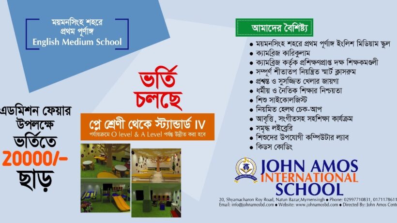 First time ever an absolute English Medium School in Mymensingh. Admission going on Play to Standard-IV for July session (2025-26)